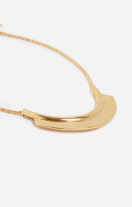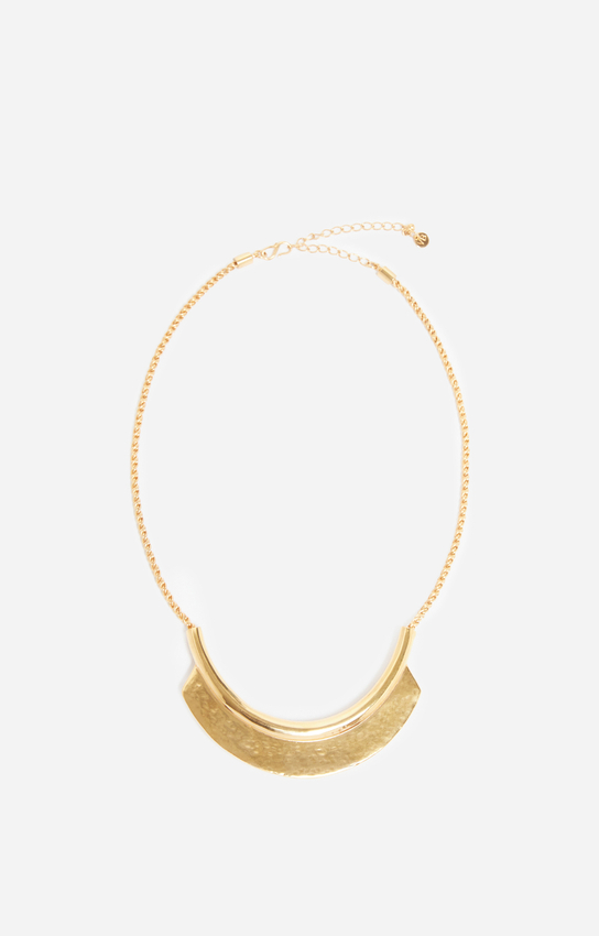 Un collier sculptural qui apporte une touche d’élégance à toutes les tenues. Son design raffiné et sa finition martelée captent la lumière avec subtilité, tandis que sa chaîne ajustable permet un porté sur-mesure. Un bijou intemporel à ajouter à votre collection.