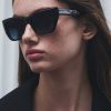 Vanessa Bruno présente sa première collection de lunettes de soleil, développée pour créer un style emblématique, propre à toutes les femmes qui les porte. La styliste parisienne apporte un regard à la fois simple et sophistiqué de cet indispensable en alliant le chic fonctionnel, comme elle sait si bien le faire. Le modèle Cléo en acétate noir, présente une ligne angulaire et minimale, avec un léger effet papillon grâce au biseau discret. Son volume apporte à la lunette de soleil Cléo une féminité audacieuse avec une touche androgyne. On retrouve sur la branche l’emblématique serpent, inspiré du sac Cléo.