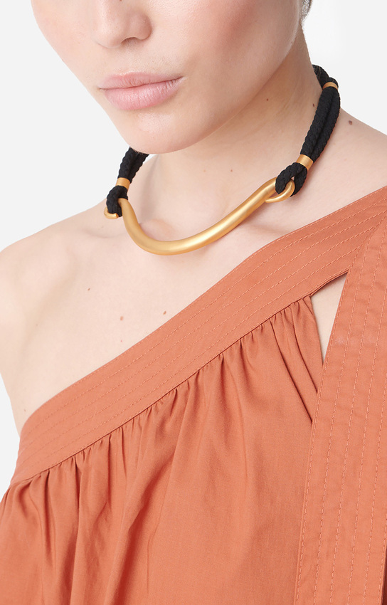 La torque Neylla, élégante et minimaliste, combine subtilement un laiton lumineux et un cordon tressé. Son design épuré et moderne en fait une pièce forte, idéale pour ajouter une touche contemporaine et sophistiquée à votre tenue. Parfaitement ajustée au cou, elle s’associe aussi bien avec un look décontracté qu’avec une tenue plus habillée, pour un style audacieux et affirmé.