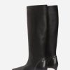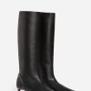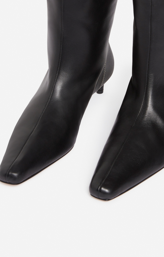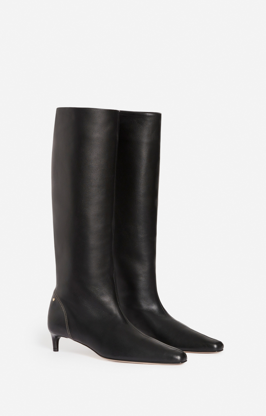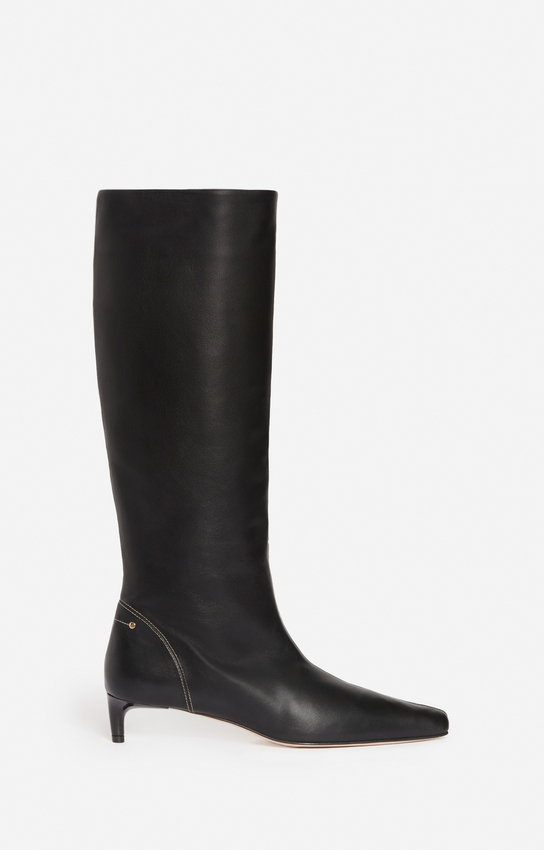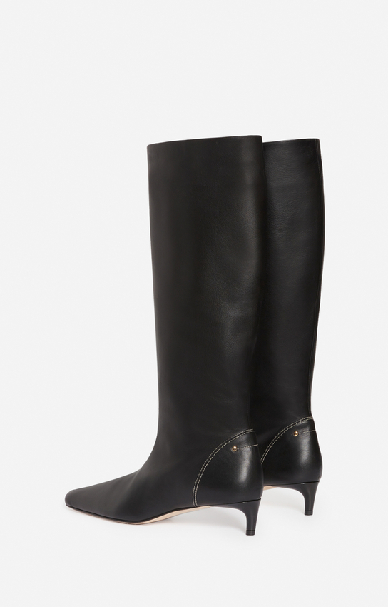 Le nouveau modèle de bottes en cuir d’agneau et de vachette. Ce modèle se distingue par sa finition lisse et sa ligne épurée, reprenant les codes de notre sac Daily avec son travail du cuir lisse et ses coutures contrastantes. Sa silhouette épouse la cheville délicatement pour s’évaser au niveau des mollets, parfait pour enfiller un jean ou un pantalon ou créer un volume graphique sous une jupe.