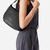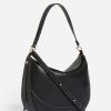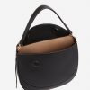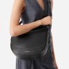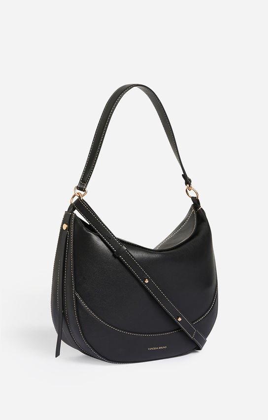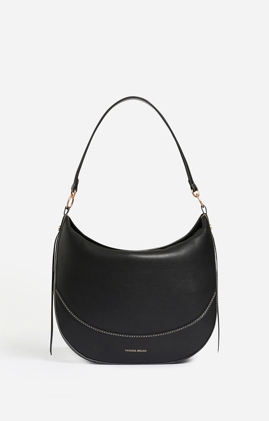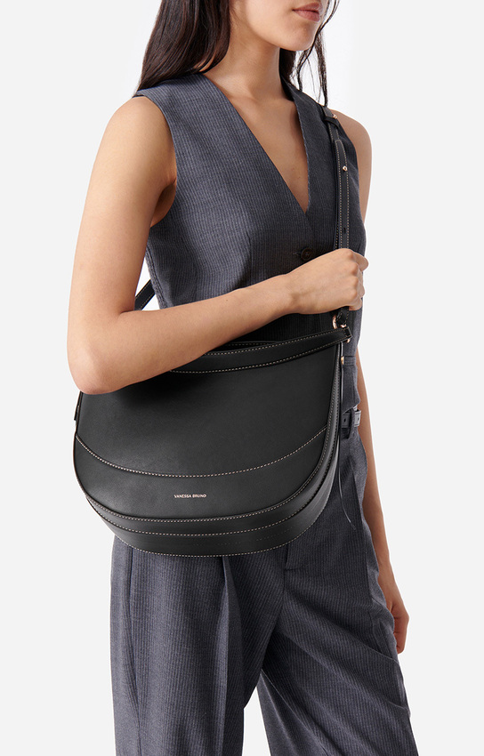 Sac demi-lune en cuir lisse. Porté main, épaule ou crossbody.
