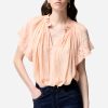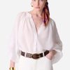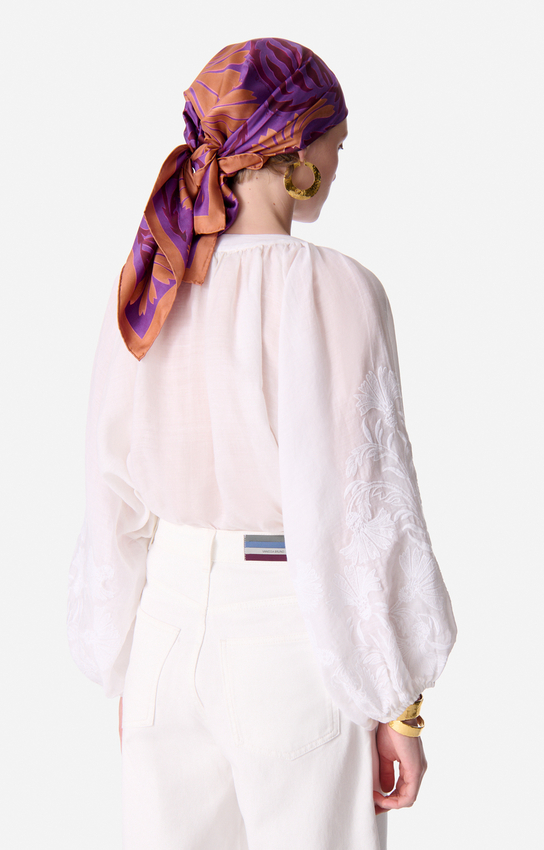 La blouse aérienne Edme allie simplicité et raffinement avec sa coupe fluide et son encolure large et arrondie. Légère et soyeuse, elle se distingue par ses manches bouffantes et ses détails froncés qui lui apportent du volume et une touche bohème. Polyvalente et intemporelle, elle se porte aussi bien glissée dans une jupe imprimée pour un look solaire que sur un pantalon fluide pour une allure plus sophistiquée.