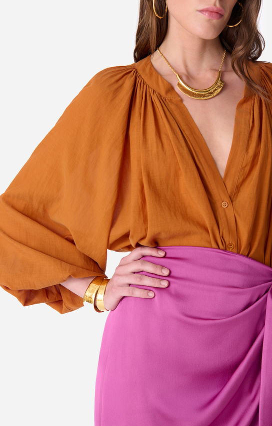La blouse Edme incarne une élégance fluide et décontractée, parfaite pour un vestiaire raffiné. Sa coupe ample et légère apporte une sensation de liberté et de confort, tandis que son encolure délicatement froncée lui confère une touche de féminité subtile. Facile à associer, elle s’adapte à toutes les occasions, du quotidien aux moments plus habillés. Une pièce essentielle qui traverse les saisons avec grâce et modernité.