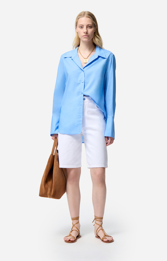 La chemise classique en popeline de coton revisitée avec des poignets rallongés.