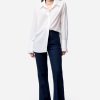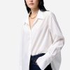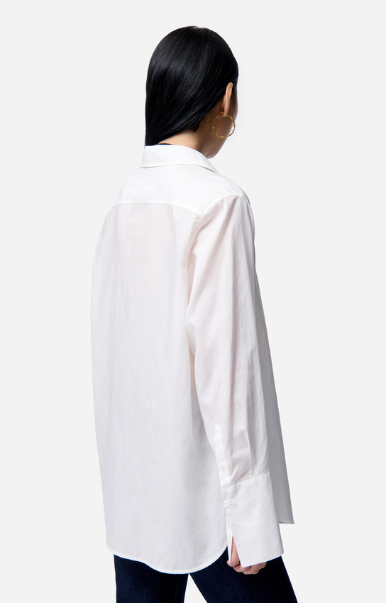 Cette chemise au volume souple réinvente le classique masculin-féminin avec une touche de contraste raffinée : ses poignets extra-longs. Parfaite pour équilibrer une silhouette fluide ou rehausser un denim brut.