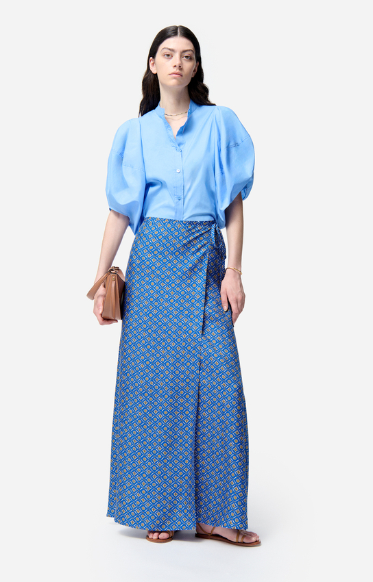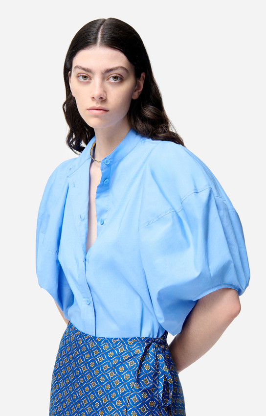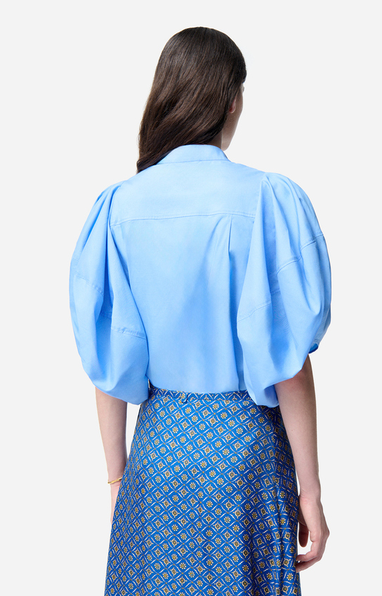 Avec ses volumes sculptés et sa coupe structurée, cette blouse revisite l’allure féminine avec une touche de modernité affirmée.