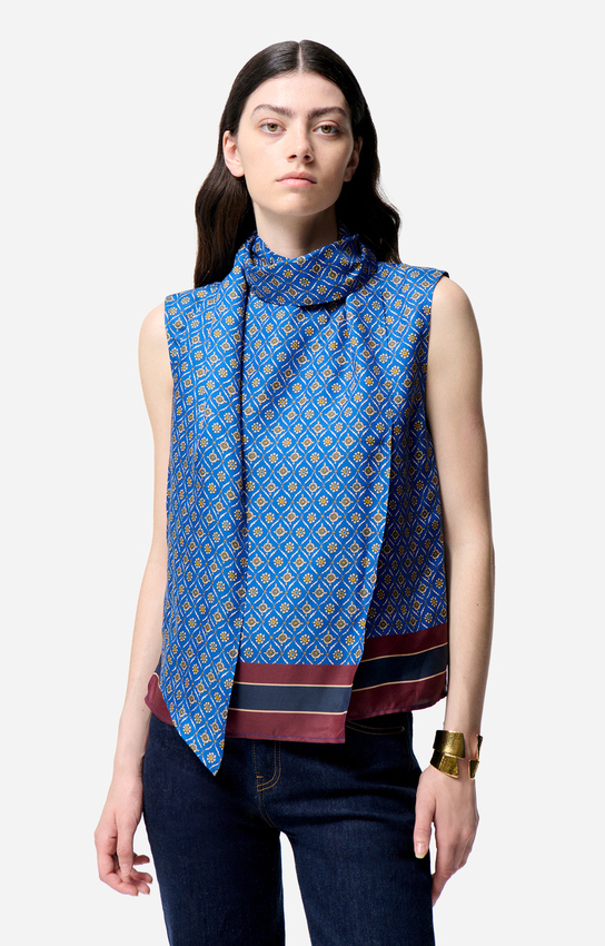 Sans manches et fluide, ce haut s’inscrit dans un vestiaire chic et structuré.