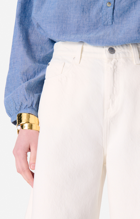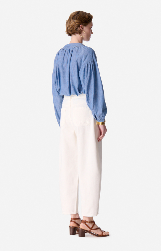 Le jean Caleb taille haute est le jean parfait pour un look décontracté. Confectionné en toile de coton, il adopte une coupe barrel, légèrement arrondie sur la jambe, qui apporte du volume à la silhouette tout en s’affinant subtilement vers le bas pour un rendu moderne et structuré.