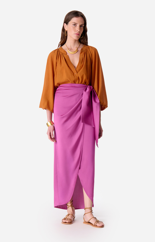 élégante et fluide, la jupe portefeuille Ewa sublime la silhouette avec son drapé croisé et son nœud ajustable. Son tissu léger assure un tombé impeccable, offrant confort et féminité. Polyvalente, elle se porte avec un top ajusté pour une allure sophistiquée ou une blouse ample pour un style bohème. Une pièce incontournable pour un look chic et raffiné.