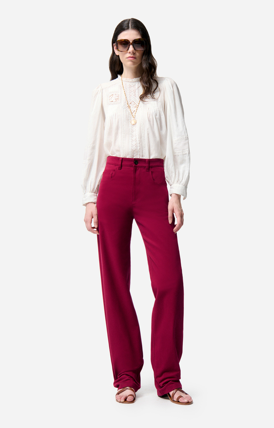 Le pantalon Farel séduit par sa coupe longue et structurée, idéale pour élancer la silhouette. Confectionné dans une toile de coton légère et légèrement stretch, il combine confort et maintien. Sa taille haute souligne la ligne de taille avec élégance, tandis que ses finitions sobres en font un essentiel facile à porter au quotidien.