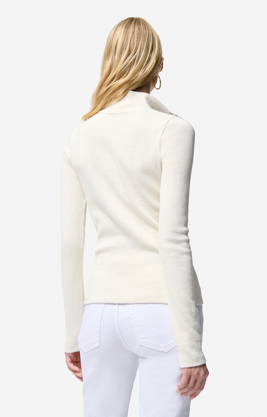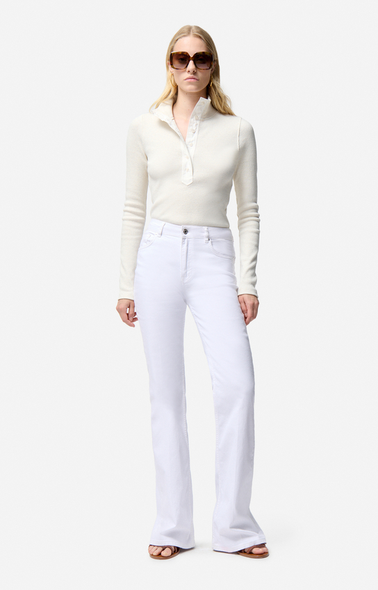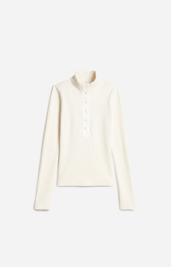 Un top seconde peau qui joue l’épure avec une élégance contemporaine, rehaussé par une encolure à boutons pression.
