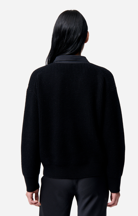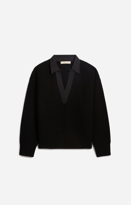 L’esprit d’un pull casual relevé par un col polo chic et décontracté.