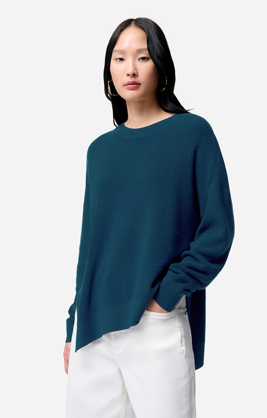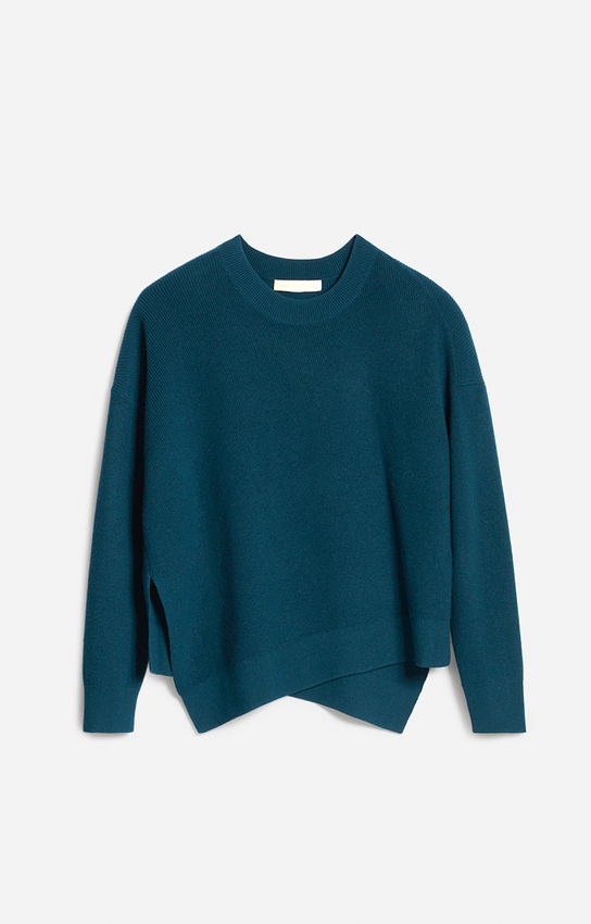 Un pull asymétrique à l’allure contemporaine, entre douceur et architecture.