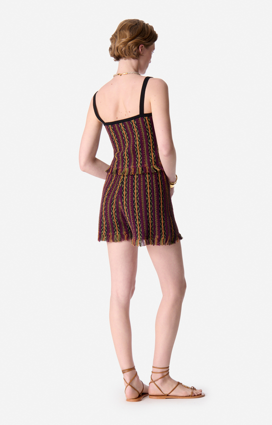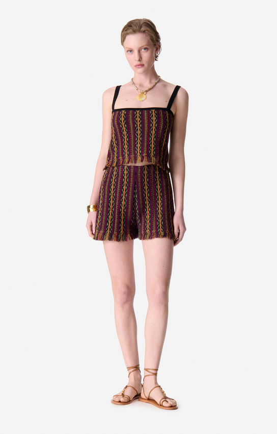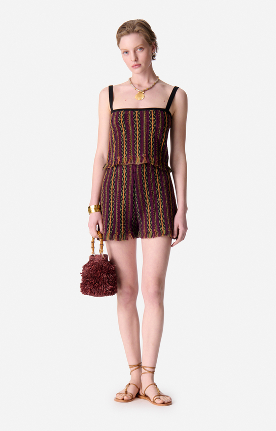 Le short Estonia tissé revisite l’esprit bohème avec son motif texturé et ses finitions à franges. Sa coupe ajustée met en valeur la silhouette tout en offrant un confort optimal. Confectionné dans une matière structurée et douce, il assure une allure à la fois décontractée et sophistiquée. Idéal pour un look original, il se porte avec un top uni pour mettre en avant son motif travaillé ou avec une blouse fluide pour une touche bohème assumée. Une pièce forte et audacieuse, parfaite pour apporter du caractère à votre dressing.