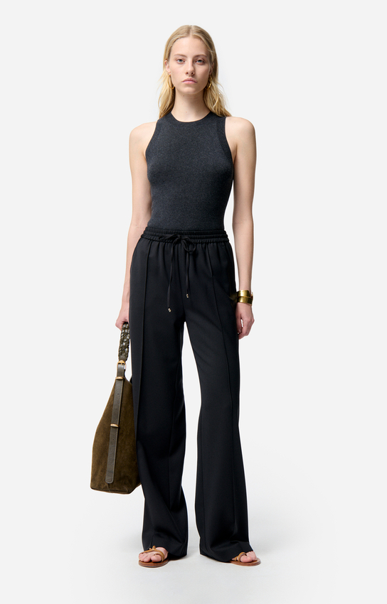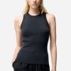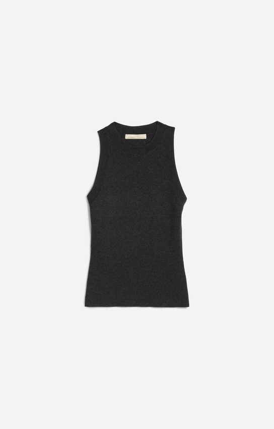 Un débardeur côtelé qui sublime le port de tête et structure la silhouette.