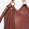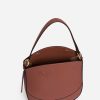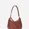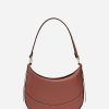 Mini sac demi-lune en cuir lisse couleur biscuit.