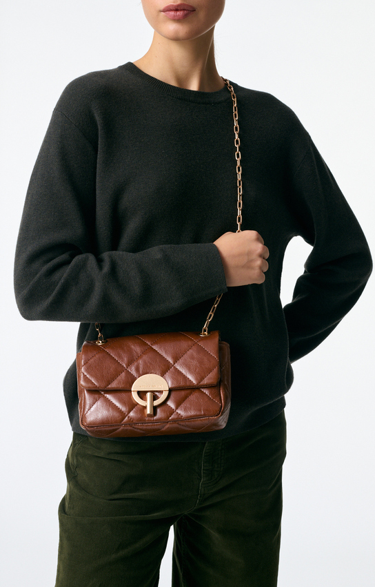 Ce sac à main allie à la perfection raffinement et fonctionnalité grâce à son design élégant. Confectionné en cuir de vachette craquelé et matelassé, il séduit par sa texture sophistiquée et ses lignes harmonieuses. L’intérieur, parfaitement agencé, offre un compartiment principal et une poche plaquée pour organiser vos essentiels avec style. Le fermoir rond emblématique et la bandoulière en chaîne ajoutent une touche de modernité et de féminité. Avec son allure intemporelle et ses détails fonctionnels, il s’impose comme un accessoire incontournable pour toutes vos tenues.