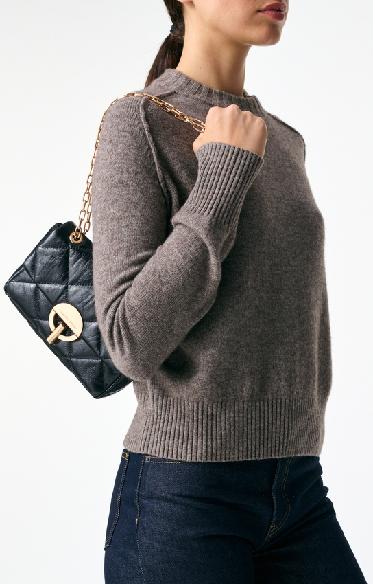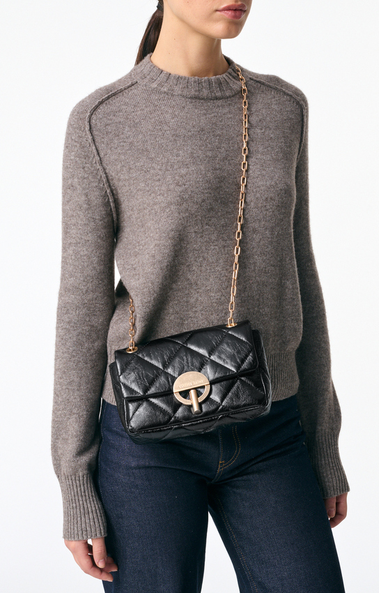 Ce sac à main allie à la perfection raffinement et fonctionnalité grâce à son design élégant. Confectionné en cuir de vachette craquelé et matelassé, il séduit par sa texture sophistiquée et ses lignes harmonieuses. L’intérieur, parfaitement agencé, offre un compartiment principal et une poche plaquée pour organiser vos essentiels avec style. Le fermoir rond emblématique et la bandoulière en chaîne ajoutent une touche de modernité et de féminité. Avec son allure intemporelle et ses détails fonctionnels, il s’impose comme un accessoire incontournable pour toutes vos tenues.