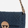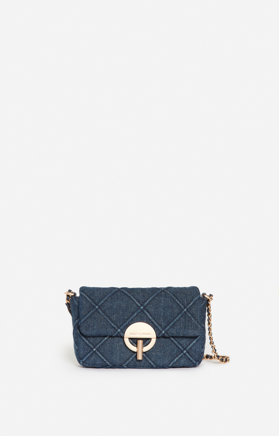 Confectionné en denim débossé, cela fait de lui une pièce moderne et féminine, qui marie style de déconcentration. Il présente un motif matelassé en losanges, cousu directement dans le tissu, créant un effet de relief, de texture subtil et sophistiqué, et est une fois de plus doté de son iconique fermoir rond. Rehaussé d’une bandoulière en chaîne et coton, ce sac à main cool et élégant vous suivra dans tous vos déplacements.