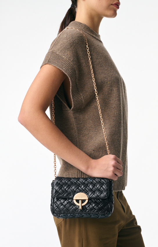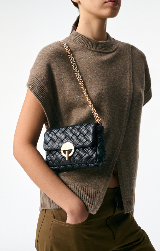 Le sac Moon, emblématique de la maison Vanessa Bruno fait partie de ces iconiques que l’on ne présente plus. Chic et versatile, ce modèle à la ligne délicate s’habille ici d’une nouvelle technique de tressage du cuir d’agneau souple, fabriqué à la main par nos artisants. Le travail du tressage apporte une texture unique et une structure minimale et élégante. Rehaussé d’une bandoulière en chaîne et cuir, ce sac à main cool et élégant vous suivra dans tous vos déplacements.