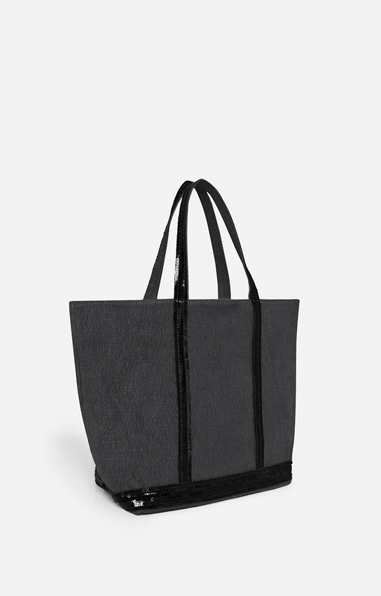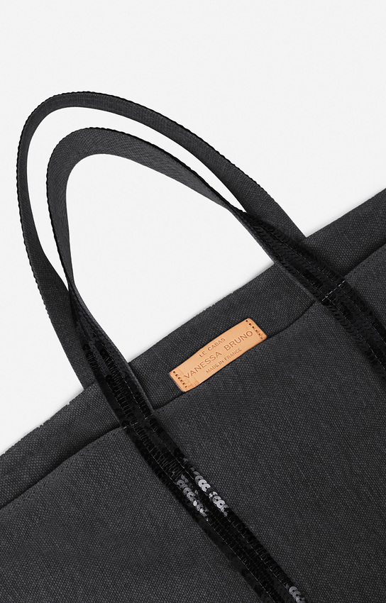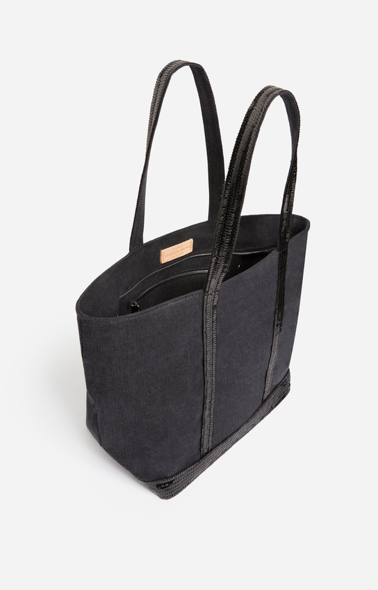 Fabriqué en France dans nos ateliers près de Paris, le Cabas en toile est l’emblème de la maison Vanessa Bruno depuis sa création en 1996. Confectionné dans une toile de lin, ce modèle au format intermédiaire est sublimé par des sequins, lui conférant une allure féminine qui sublimera votre quotidien. Présenté ici en taille M, le Cabas s’adresse à toutes celles qui aiment emporter un peu plus que l’essentiel (un grand livre, une trousse de maquillage, une tablette) tout en restant élégantes.
